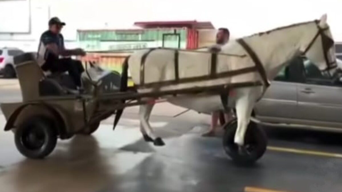 Um vídeo de arrepiar está bombando nas redes sociais e fazendo todo mundo cair na risada! A cena hilária mostra uma “carroça-moto” carregando nada menos que uma estátua de um cavalo em um posto de combustível, e a internet não perdoa!